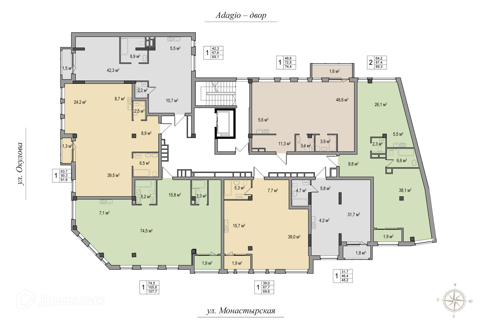 Площади квартир