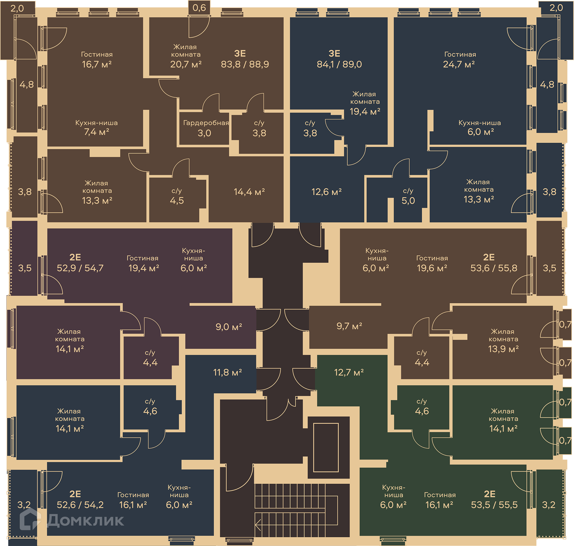 Площади квартир