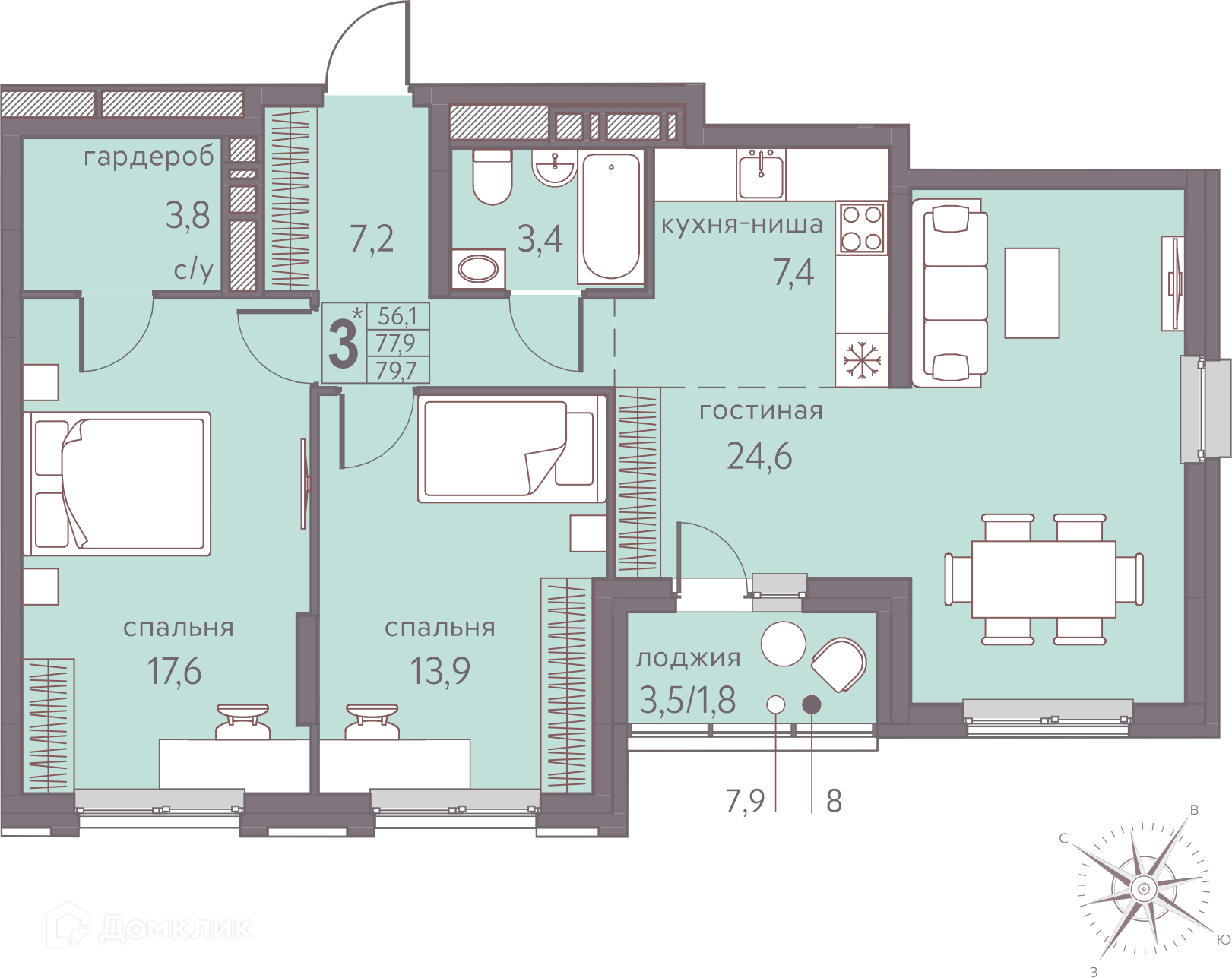 Площади квартир
