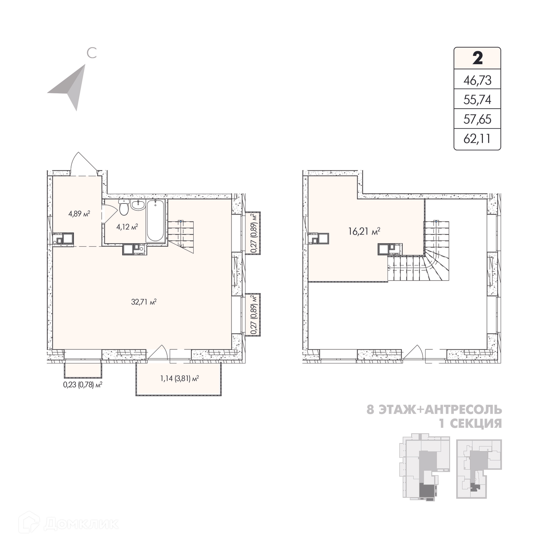 Площади квартир