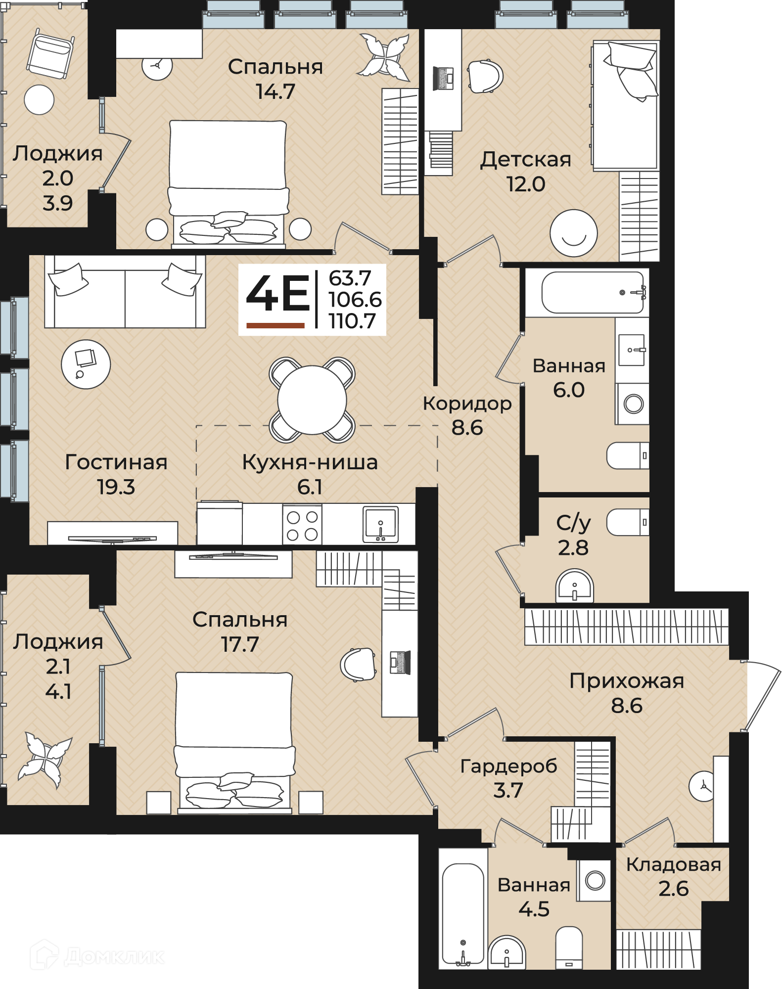 Площади квартир