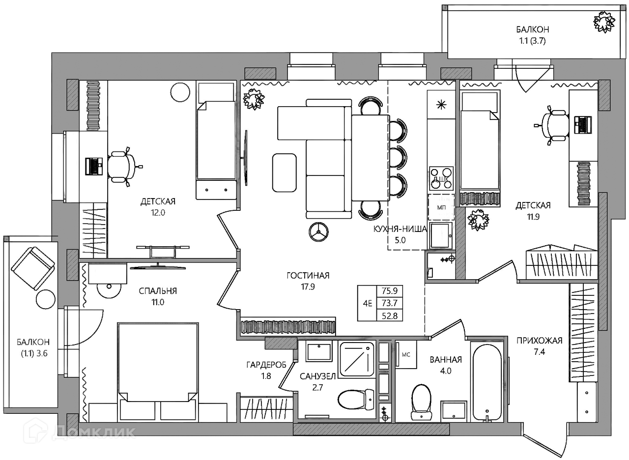 Площади квартир