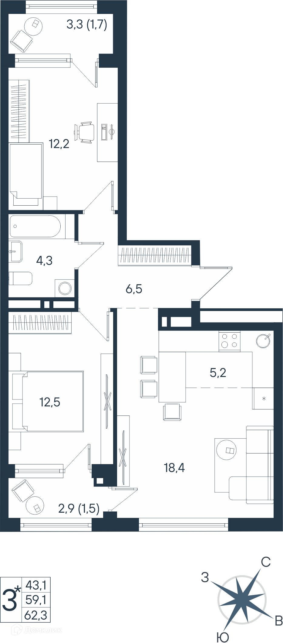 Площади квартир