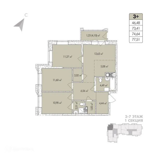 4 комн. квартира в Перьми в ипотеку от 73 899 руб/месяц