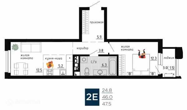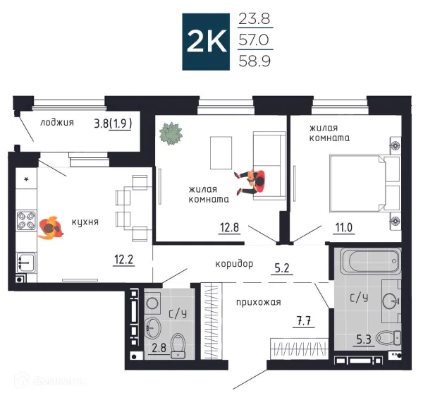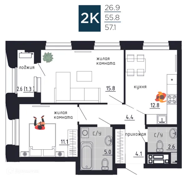 2 комн. квартира в Перьми в ипотеку от 109 901 руб/месяц