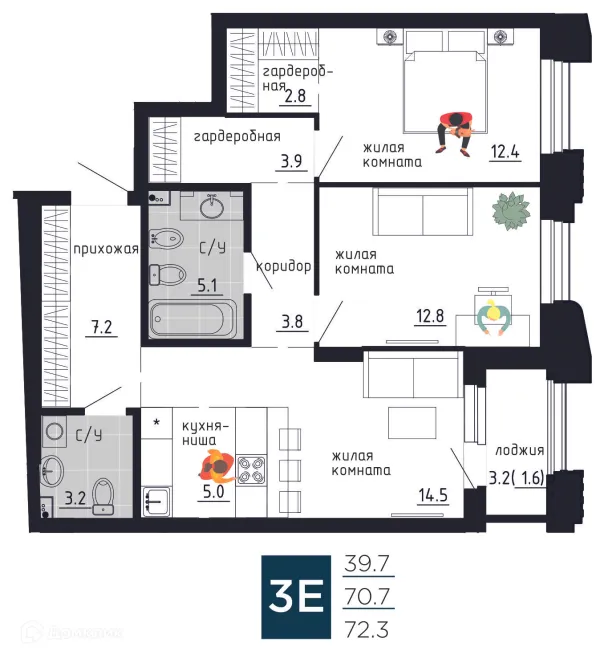3 комн. квартира в Перьми в ипотеку от 130 631 руб/месяц