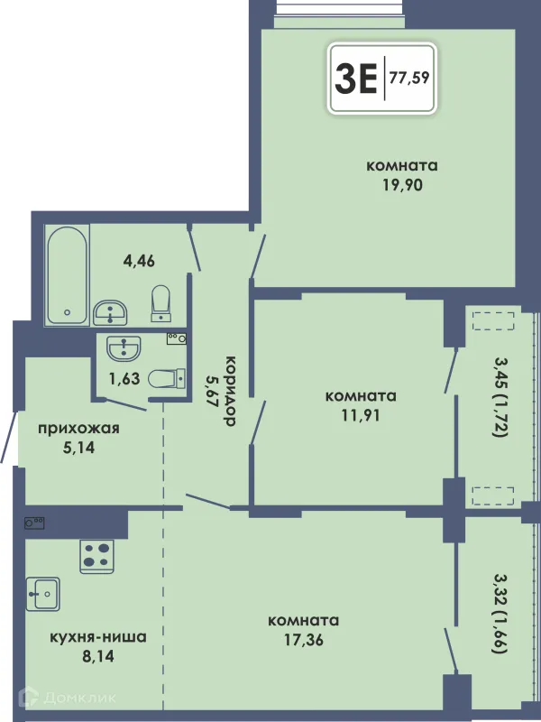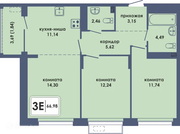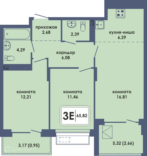 3 комн. квартира в Перьми в ипотеку от 69 266 руб/месяц