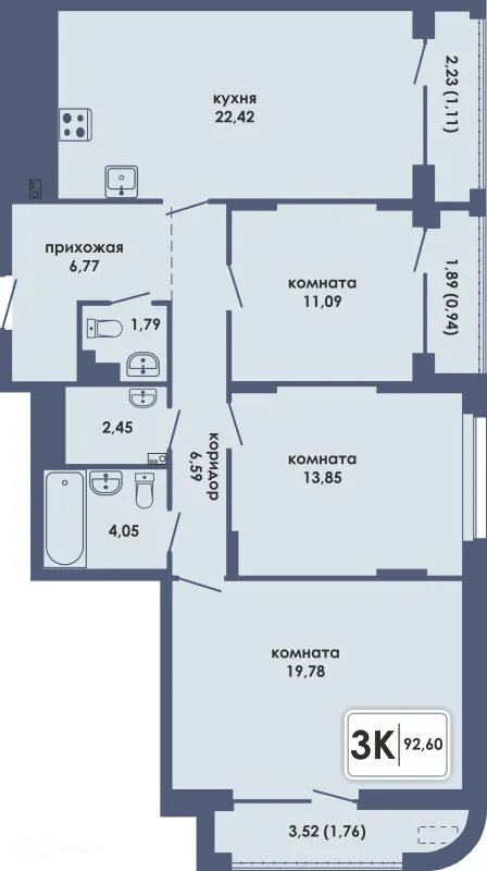 3 комн. квартира в Перьми в ипотеку от 94 786 руб/месяц