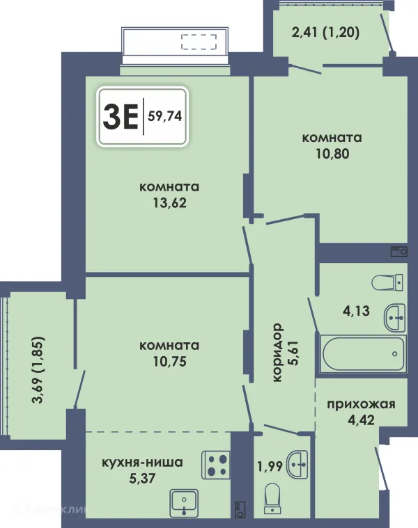 3 комн. квартира в Перьми в ипотеку от 104 961 руб/месяц