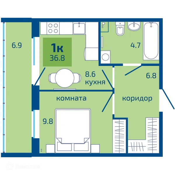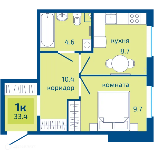 1 комн. квартира в Перьми в ипотеку от 28 696 руб/месяц