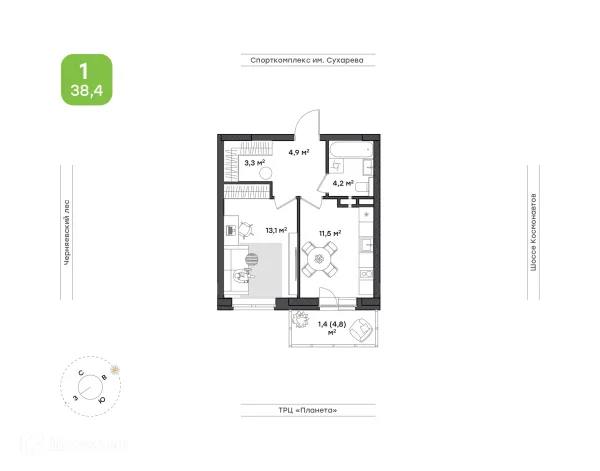 1 комн. квартира в Перьми в ипотеку от 39 814 руб/месяц
