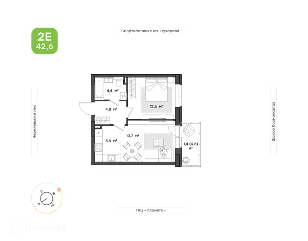 1 комн. квартира в Перьми в ипотеку от 52 140 руб/месяц