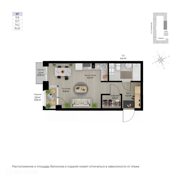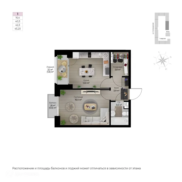 1 комн. квартира в Перьми в ипотеку от 45 604 руб/месяц