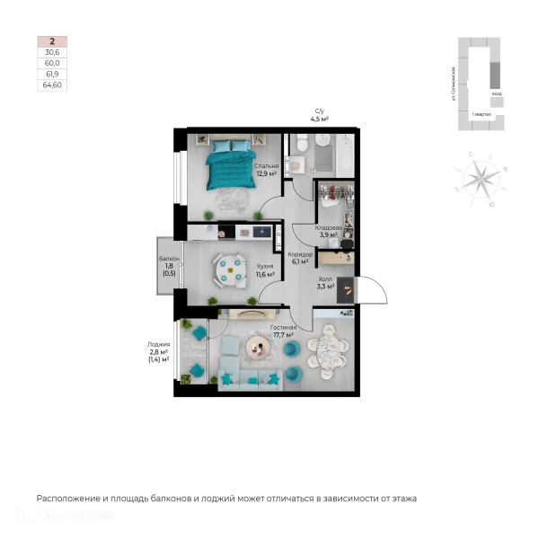 2 комн. квартира в Перьми в ипотеку от 60 599 руб/месяц