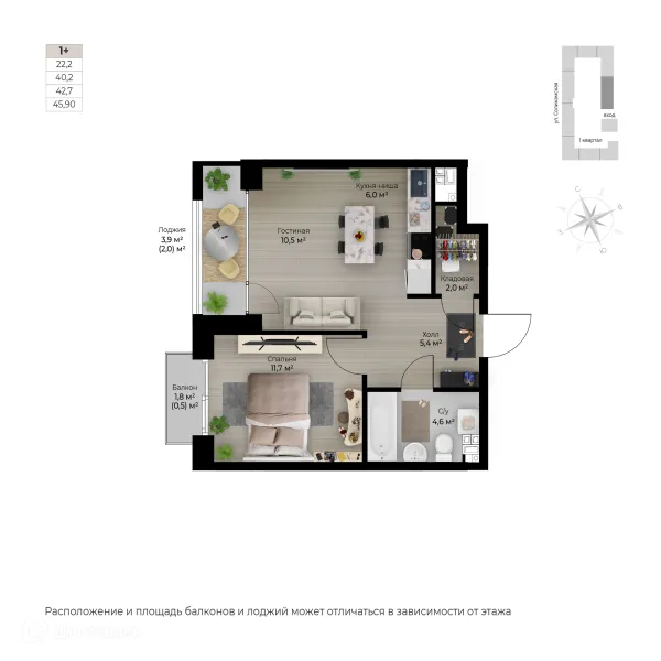 1 комн. квартира в Перьми в ипотеку от 46 242 руб/месяц